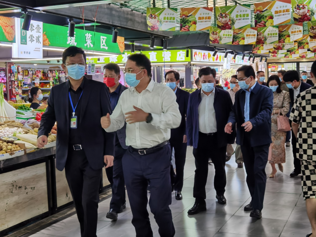 4月21日下午,江岸区委副书记、区长余志成、江岸区副区长张念强、区商务局局长祝丽芳、区市场监督管理局局长杨振华、花桥街办事处主任宋承虎等领导一行视察湖北市井荟商业管理有限公司旗下唐蔡综合便民市场,并指导工作。
