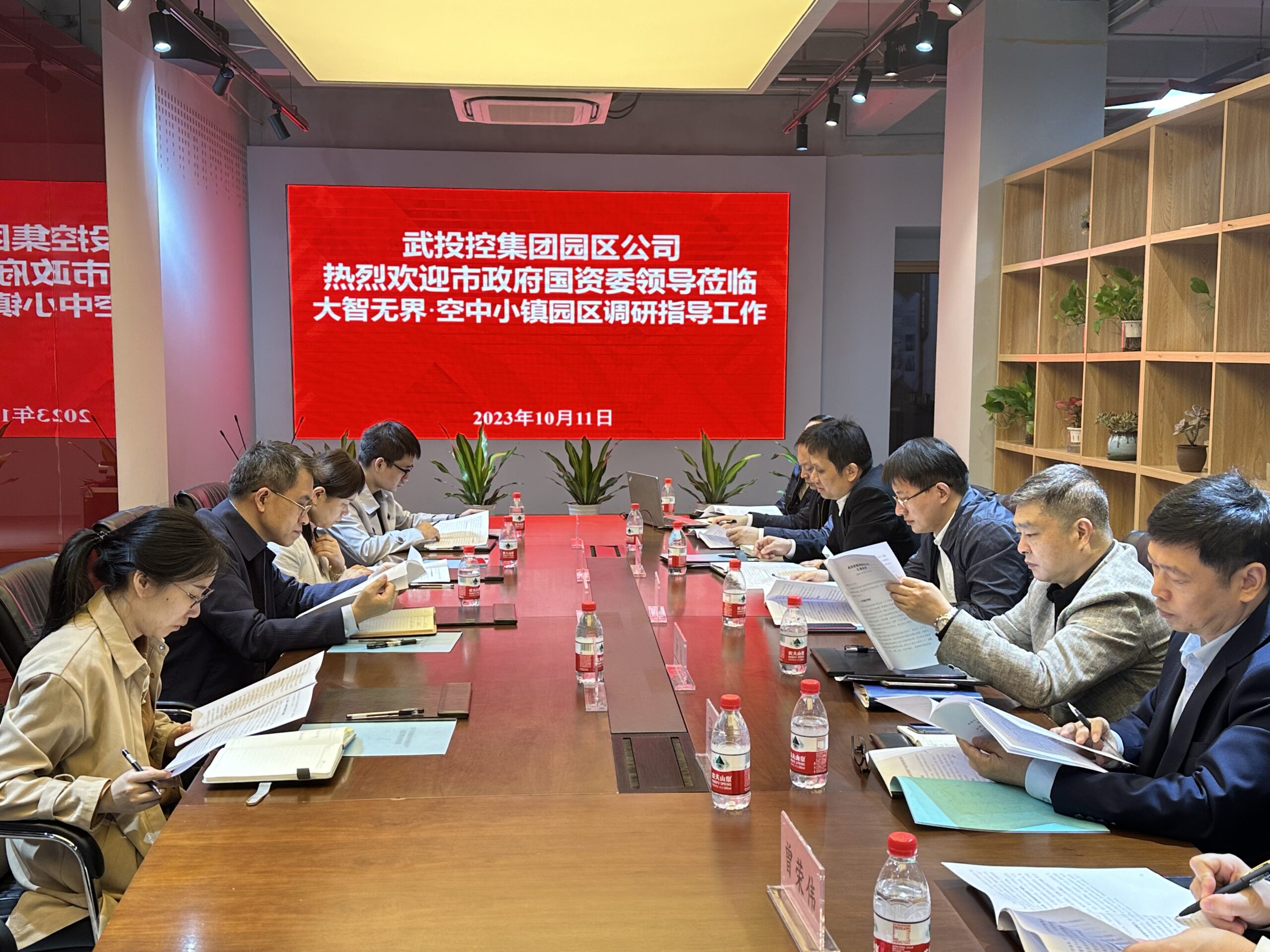 市政府国资委产权管理处处长肖淼、武投控集团总经理助理陈曦、集团资本运作部部长汤俊、园区公司董事长兼总经理程伟、市井荟公司副总经理张海文及党群工作部、宣传策划部、招商部、物业管理部等部门负责人参加调研座谈。