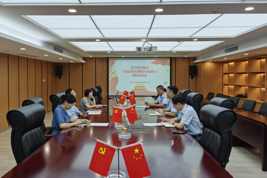 6月29日下午,武汉商贸集团有限公司党委委员、副总经理李军、产业协同部部长贾蕾、人力资源部部长马全丽一行赴湖北市井荟商业管理有限公司开展下基层察民情解民忧暖民心实践活动调研座谈会,深入企业了解民情。